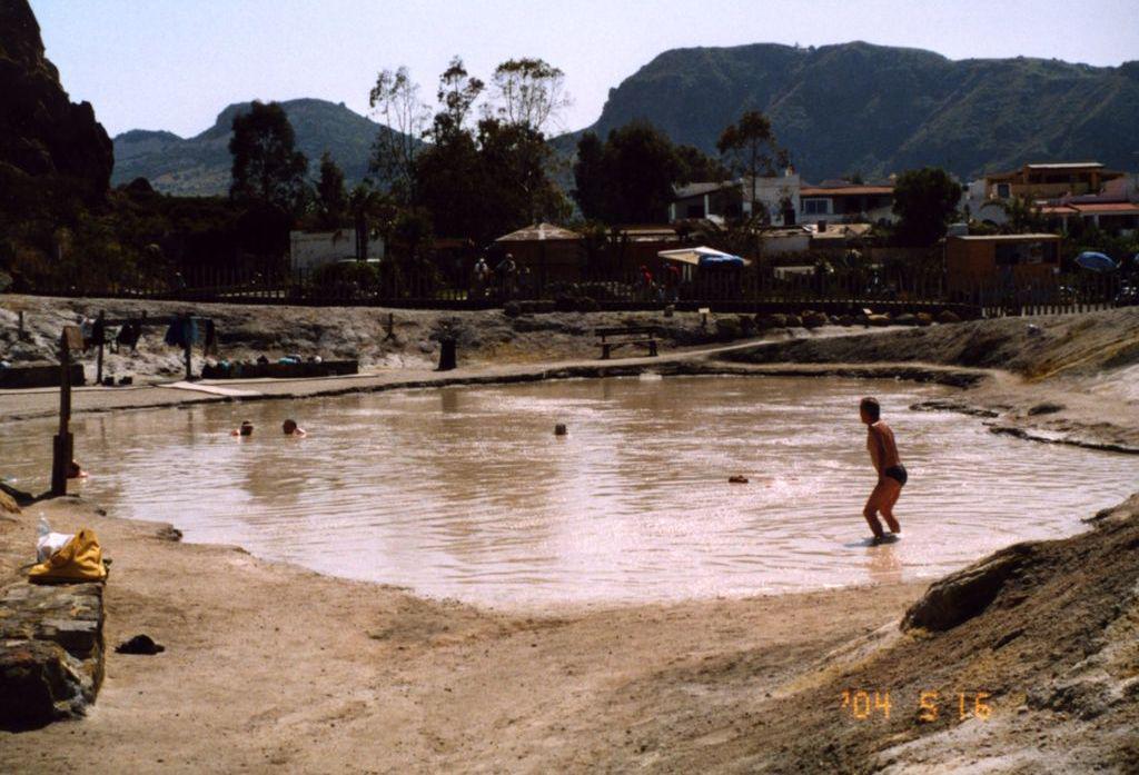 Natürlich wollten wir auf den Vulkan wandern. Das Ausbleiben der regelmäßigen Ausbrüche ist jedoch mit dem Risiko eines größeren Ausbruchs verbunden, so daß der Aufstieg nur bis etwa 400m Höhe freigegeben war. Hier sind wir am Umkehrpunkt unmittelbar neben dem Lavafeld "Sciara del Fuoco" des letzten großen Ausbruchs von 1930. Alle Strände von Stromboli haben schwarze Schotterstrände, hier am Strand von Faraglione. Im Bildhintergrund ist Strombolicio zu erkennen.