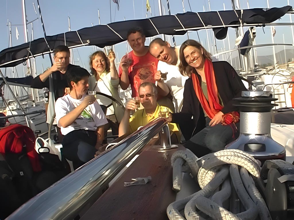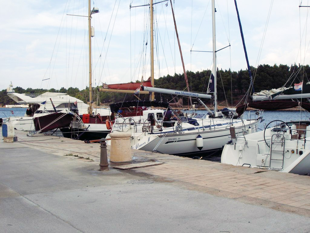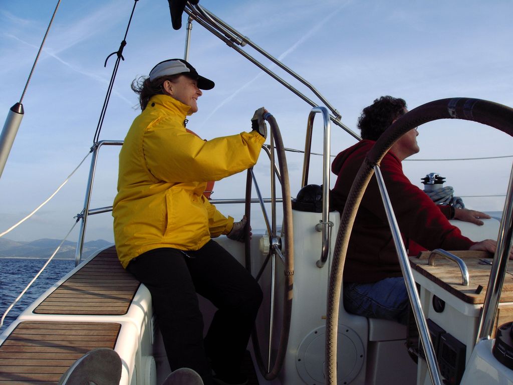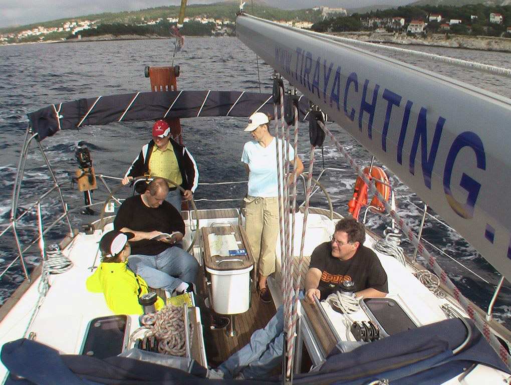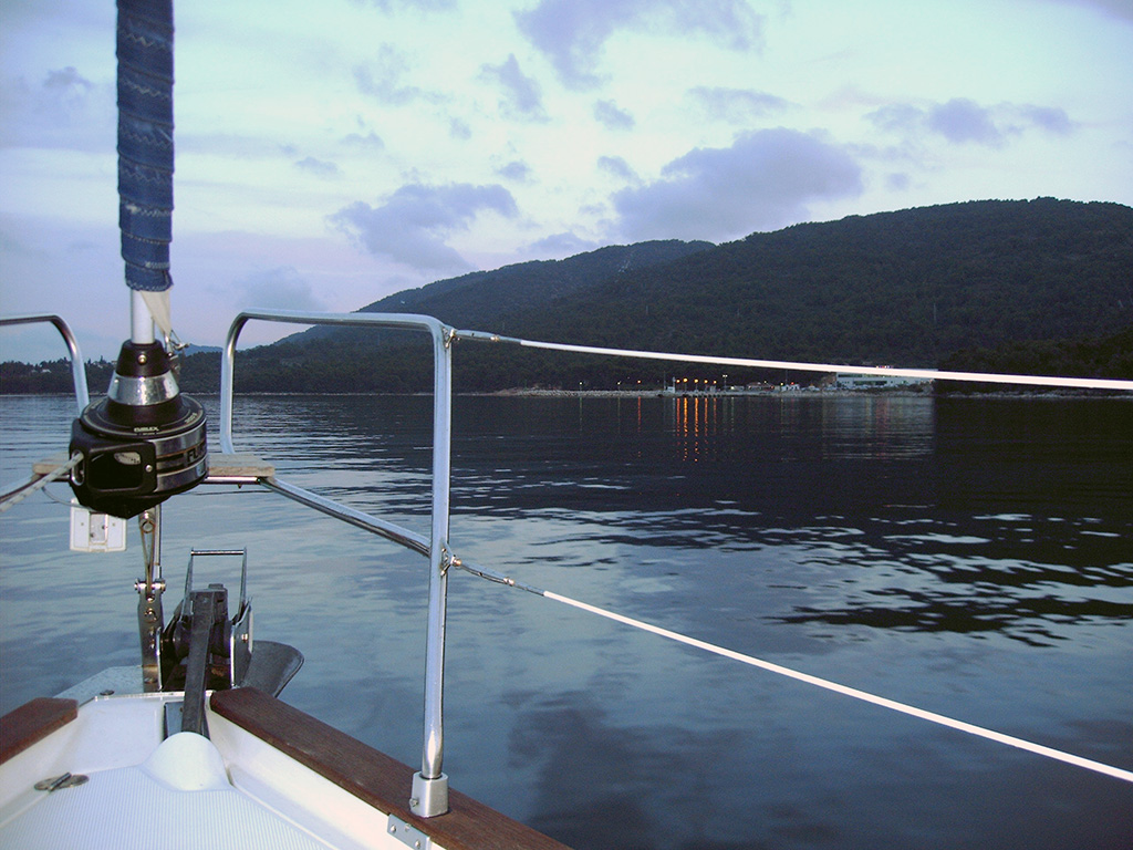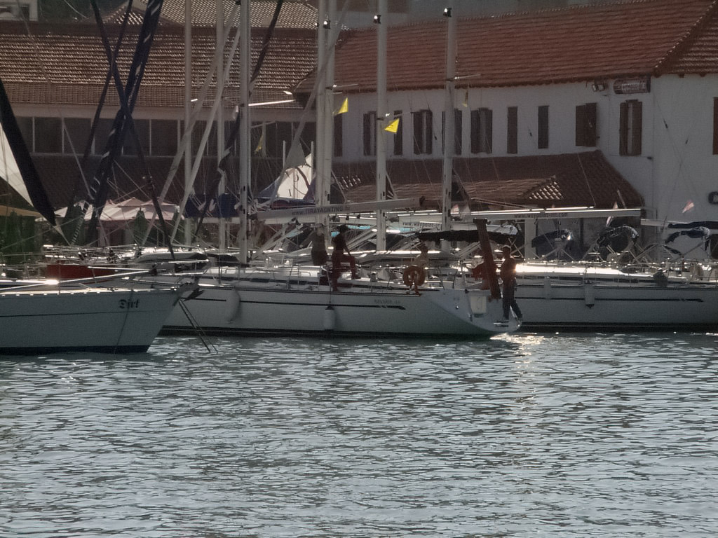 Für unsere Crew hatten wir die Bavaria 44 'Alma II' bei 'Tira Yachting' gechartert. Die Übergabe erfolgte freundlich, schnell und unkompliziert. Dennoch waren wir mit Einkaufen und Einräumen bis gegen 17:00 beschäftigt, da insbesondere das Verstauen diverser Rollen (ähem!) Toilettenpapier doch einige Zeit in Anspruch nahm. Herbert hatte Tagesbedarf verstanden, wo Wochenbedarf gemeint war (grins). So liefen wir kurz vor Dämmerungsbeginn nicht mehr aus. Stattdessen wurden ausgiebig gekocht, um uns nach den Entbehrungen der langen Anreise wieder zu stärken.