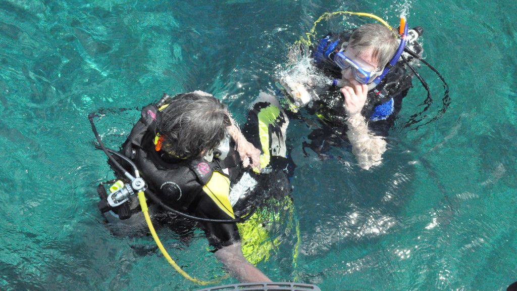 Unser Festmacher hatte sich offenbar an einer scharfen Kante der Bojenöse, die wir nicht bemerkt hatten, durchgescheuert. Es war natürlich reichlich blöd, bei dem etwas rostigen Zustand der anscheinend selten benutzten Bojen keinen zweiten Festmacher zur Sicherung angebracht oder einfach nur den Anker prophylaktisch mit etwas Kette auf Grund ausgelegt zu haben. Doch das half jetzt nichts. Durch den permanenten NO-Passat mit beständig 4 Beaufort war offenbar so viel Reibung auf der Leine entstanden, dass diese binnen weniger Stunden durchgescheuert war. Nun jedenfalls saß die 'Arwen' im nur noch 1,7m tiefen Wasser auf ihrem Kiel in flachem Sandgrund auf.
