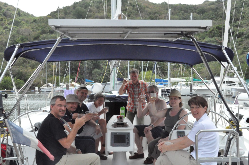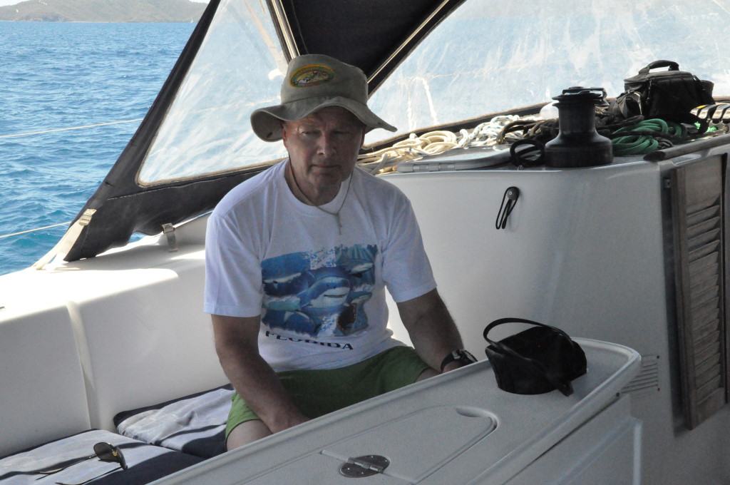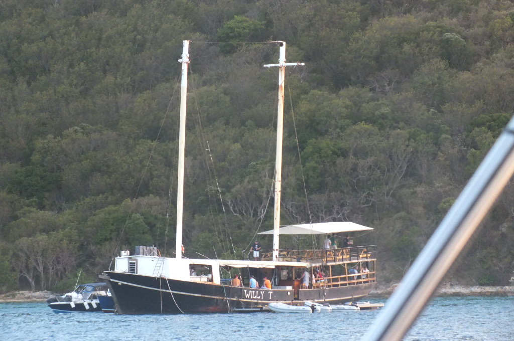 Gegen 10:00 Uhr verließen wir 'Drakes Anchorage' wieder. Nachdem wir den 'North Sound' verlassen hatten, näherte sich ein Schlauchboot. Eine sportliche Dame fuhr im Stehen mit Kamera auf der Schulter und umkreiste uns mehrfach. Sie kam uns teils recht nah, und machte dabei sicher spektakuläre Aufnahmen von uns. Auf ihrem Boot war eine Internet-Adresse angegeben, wo man die Bilder dann wohl ansehen und bestellen konnte. Allerdings fanden wir bei der Recherche, die erst wieder zu Hause möglich war, keine Previews der Aufnahmen mehr. Schade.