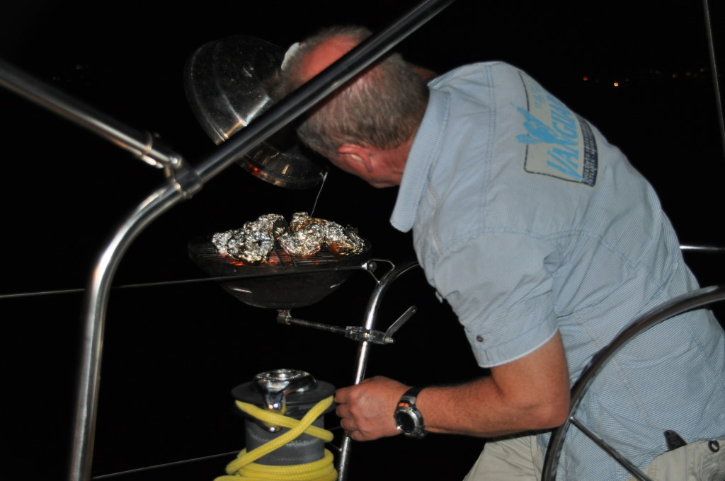 Beim Frühstück klärte ich dann auf, dass das Nachtmanöver eine in die Törnplanung eingeschobene Abenteueraktion war, um keine Langeweile aufkommen zu lassen. Allerdings wollte mir das niemand so recht abkaufen ...