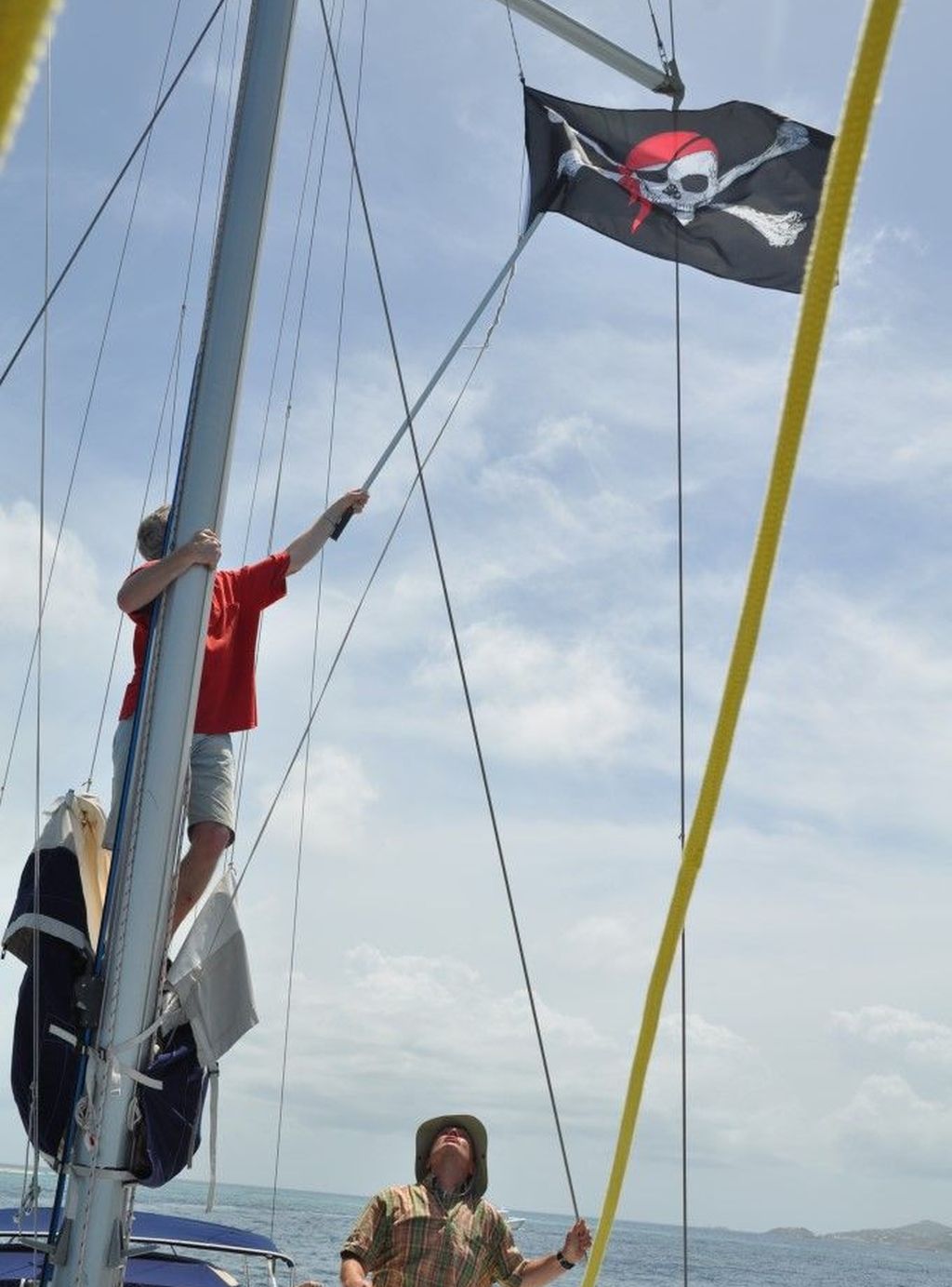 Die Gezeiten sind in der Karibik zwar gering, ein Blick auf die Tidentafel im Garmin zeigte aber, dass aktuell Ebbe und niedrigster Wasserstand war. Gegen 7 Uhr morgens war mit 25cm höherem Wasser zu rechnen. Das, so hofften wir, würde dann reichen, um wieder freizukommen. So markierten wir zur guten Sichtbarkeit für etwaige nachts hier fahrende Boote unsere horizontal zu den Bojen gespannten Festmacher und die Ankerkette mit unseren Fendern und gingen dann in die (deutlich schrägliegenden!) Kojen.