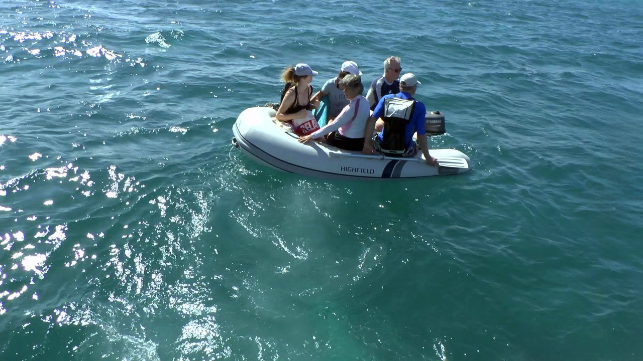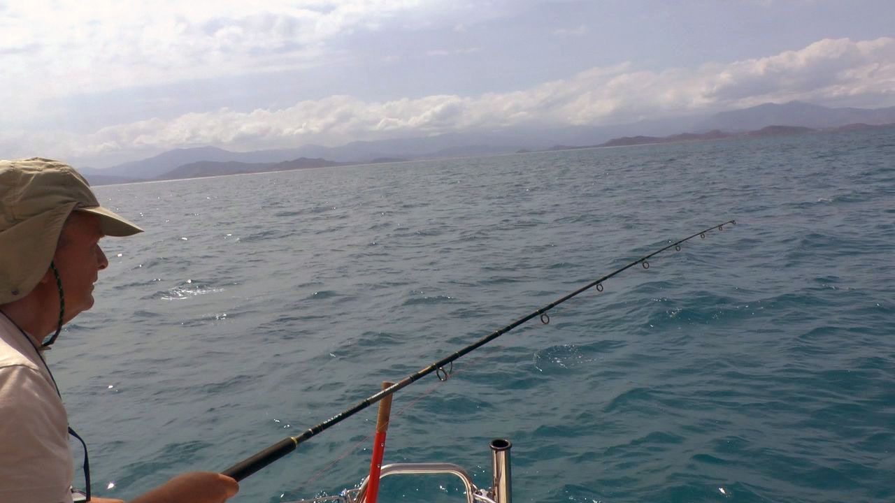 Unser Tagesziel war die südöstlich gelegene Insel 'Amedee'. Da auch hier die Überfahrt nicht weit war, hatten wir vormittags keine Eile und legten erst gegen 11:30 ab. Plötzlich kam aber die Idee auf, statt 'Amedee' direkt innerhalb der Laguna anzusteuern, die Lagune durch den westlich gelegenen 'Pass de Dumbea' zu verlassen, auf dem offenen Pazifik am Aussenriff entlang nach Südosten zu fahren und durch den Pass bei 'Amedee' wieder in die Lagune zurückzukehren. So hofften wir auf dem offenen Ozean bessere Chancen zu haben, dass Jochen ein leckeres Abendessen angelt. Für diese spontane Idee waren wir aber zu spät gestartet. Dennoch nahmen wir Kurs Richtung Westen und durchfuhren den 'Pass de Dumbea'. Es ist immer wieder beeindruckend die Naturgewalten wahrzunehmen, wenn man ein Korallenriff durchfährt und die scheinar grundlos auf dem offenen Meer sich brechenden Wellen am Riff sieht. Etwa zwei Stunden fuhren wir ausserhalb der Laguna auf dem offenen Pazifik und Jochen angelte, was das Zeug hielt. Doch auch hier wollte sich kein Erfolg einstellen. So fuhren wir gegen 15 Uhr wieder durch den Pass zurück in die Lagune - ohne frisches Abendessen.