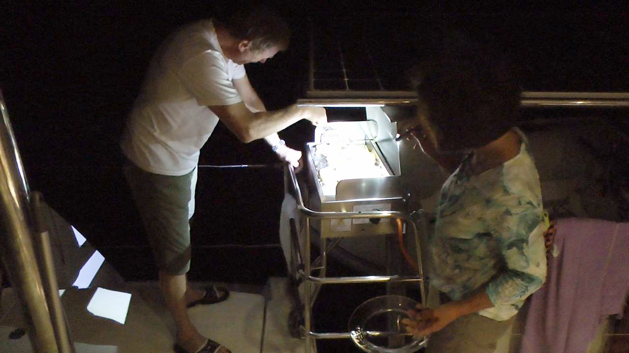 Unmittelbar in der Nähe des 'Passe de Dumbea' befindet sich die 'Ile Nge'. Weil es hier absolut einsam und natürlich auch landschaftlich schön war, animierte uns die Stelle zu einer erneuten Planänderung. Wir suchten uns einen Ankerplatz vor der 'Ile Nge', um hier über Nacht zu bleiben. Mit dem Dinghy unternahmen wir noch einen Abstecher zur Insel und genossen ansonsten einen Abend in absoluter Einsamkeit. Statt gegrillten Fisches gab es dann eben gegrilltes Gemüse von schiffseigenen Gasgrill.