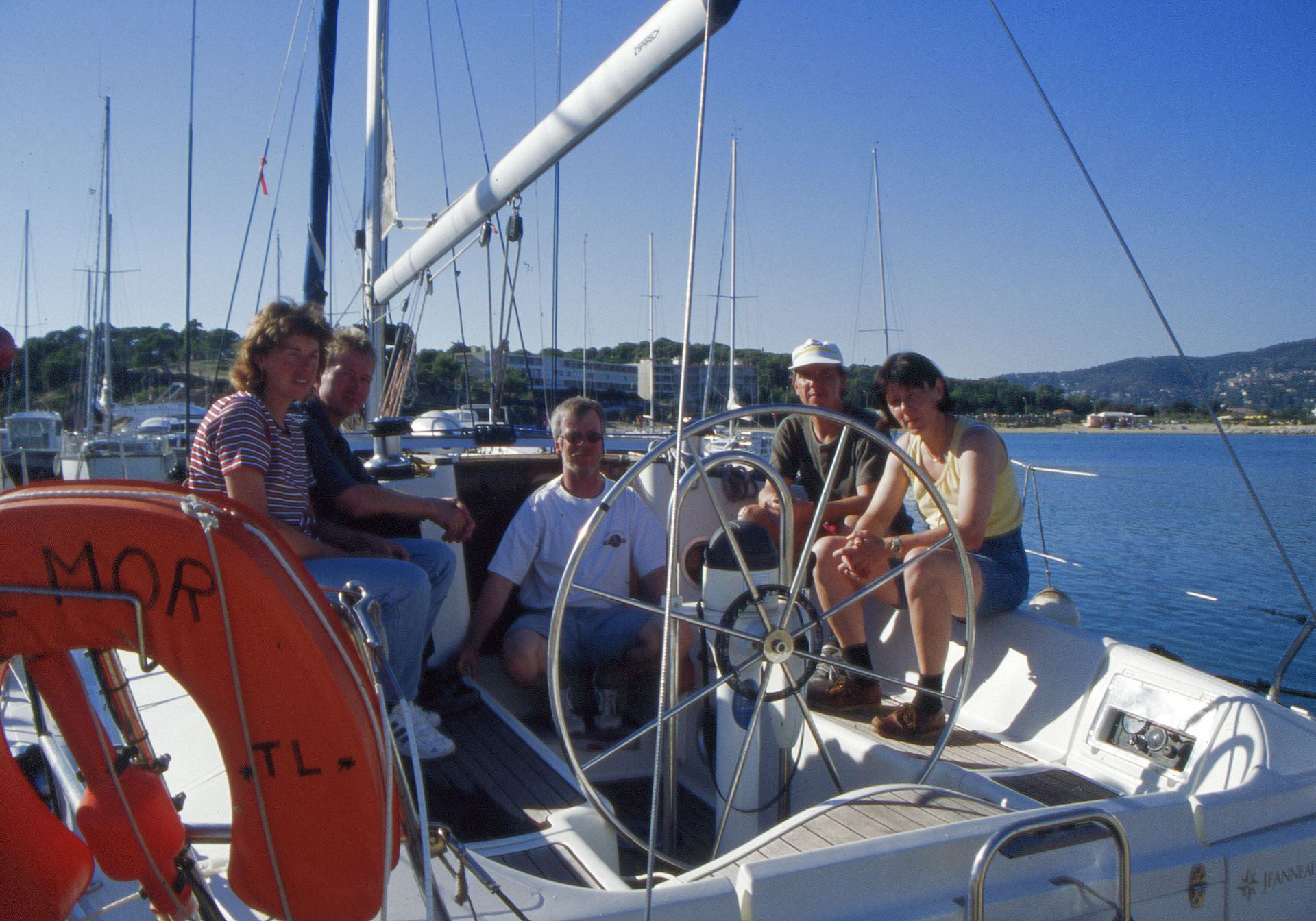 Für unseren ersten selbstgeführten Törn wählten wir das von der eigenen Ausbildung und Prüfung an Ostern 1999 noch gut bekannte Revier der Cote d'Azur. Dieses Mal starteten wir in Bormes-les-Mimosas und besuchten die schönsten Punkte mit der Ile de Porquerolles, Port Grimaud (hier beim Anleger an der Stadtkirche), Frejus, Saint Tropez und Cavalaire. In 148 Seemeilen lernten wir den Stress kennen, selbst ein Boot verantwortlich zu führen. Dabei war unsere Sun-Odyssey 36 'Varec Mor' von Kiriacoulis Yachting ein idealer Begleiter, um das Skippern zu erlernen. Dass unsere Mitsegler ihrerseits zum ersten Mal auf einem Boot waren, war für uns eine zusätzliche Herausforderung.