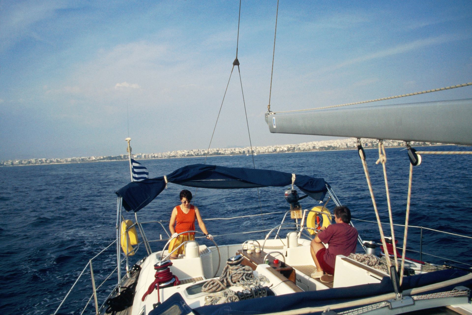 Jetzt das Segel schon herauszunehmen, schien wenig sinnvoll. Wir fuhren deshalb an Land und riefen bei Tzennet-Yachting an. Man versprach uns, am kommenden Morgen ein Segel mit der Fähre zu schicken. Etwas ungläubig über solch prompten Service erkundigten wir uns nach dem Fahrplan. Die Fähre sollte dienstags um 10:30 Uhr eintreffen. Bei der Rückfahrt, nun mit dem Dingi gegen den Wind, wurden wir noch komplett geduscht. Lecker zubereiteter Fisch entschädigte dann aber für die Mühen und Hindernisse des Tages und gegen 21:00 Uhr ließ auch der Wind etwas nach.