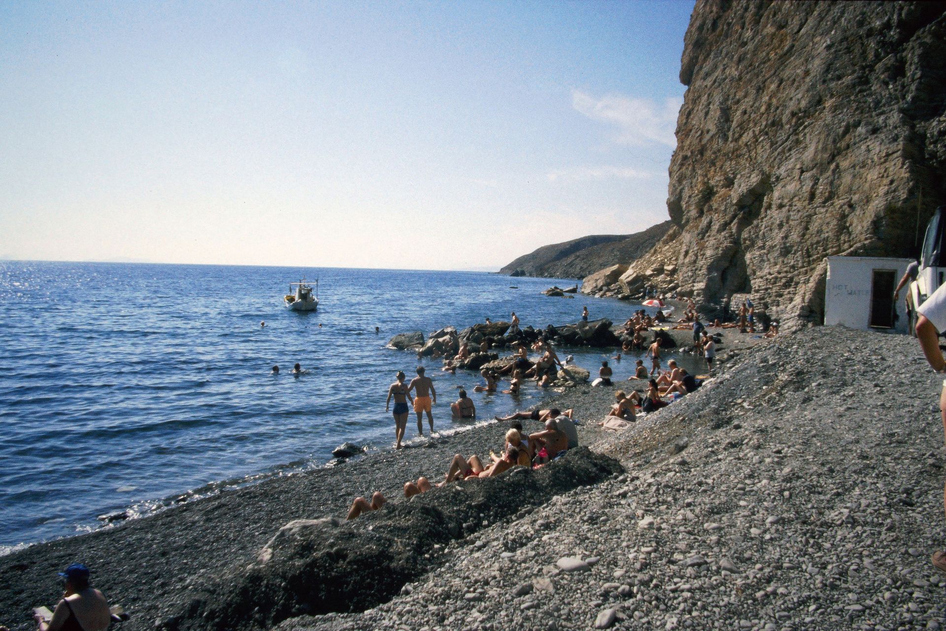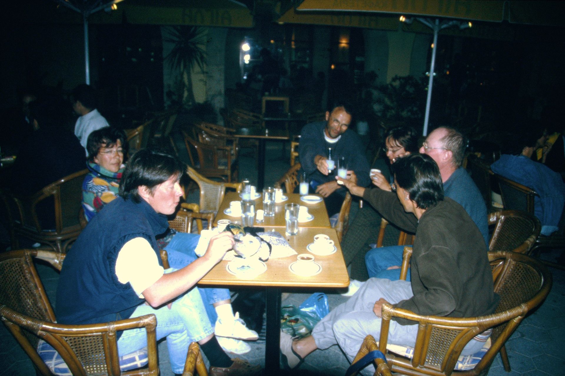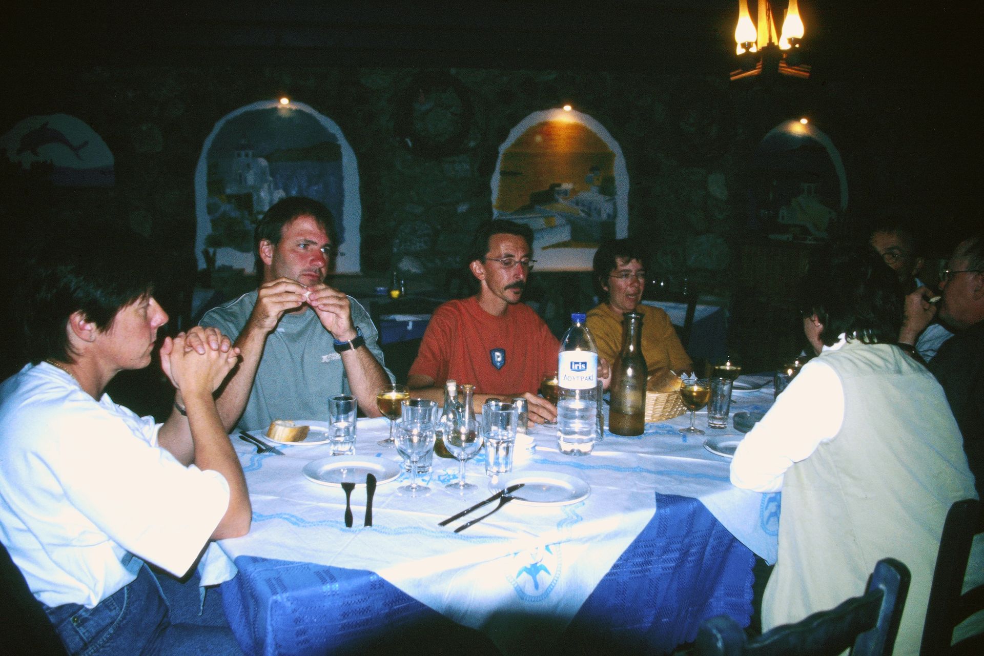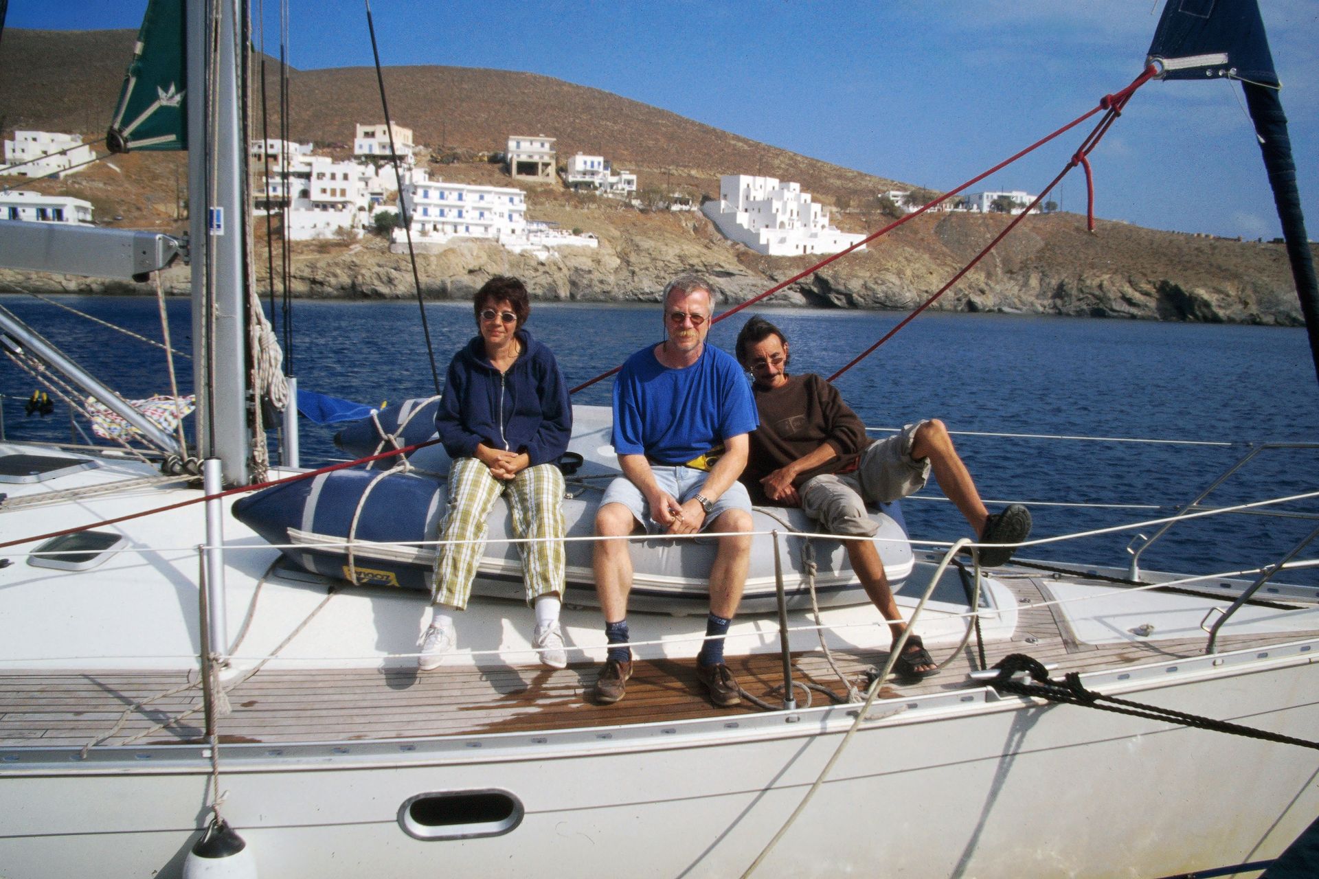 Als wir gegen 16:30 Uhr in Paros ankamen, hatte sich der Wind auf 15 Knoten abgeschwächt - gut, um das Segel zu wechseln. Doch auch hier war der Hafen restlos belegt. Also ankerten wir in der Bucht und hofften auf den nächsten Morgen. Beim Landgang diskutierten wir, wie es mit Birgit und ihrem Mann Thomas nun weitergehen solle, da die Wetterlage stabil und starker Wind auch für die Fahrt bis Santorin zu erwarten war. So kamen wir zu dem Schluss, dass die beiden für die Überfahrt lieber die Fähre nehmen sollten.