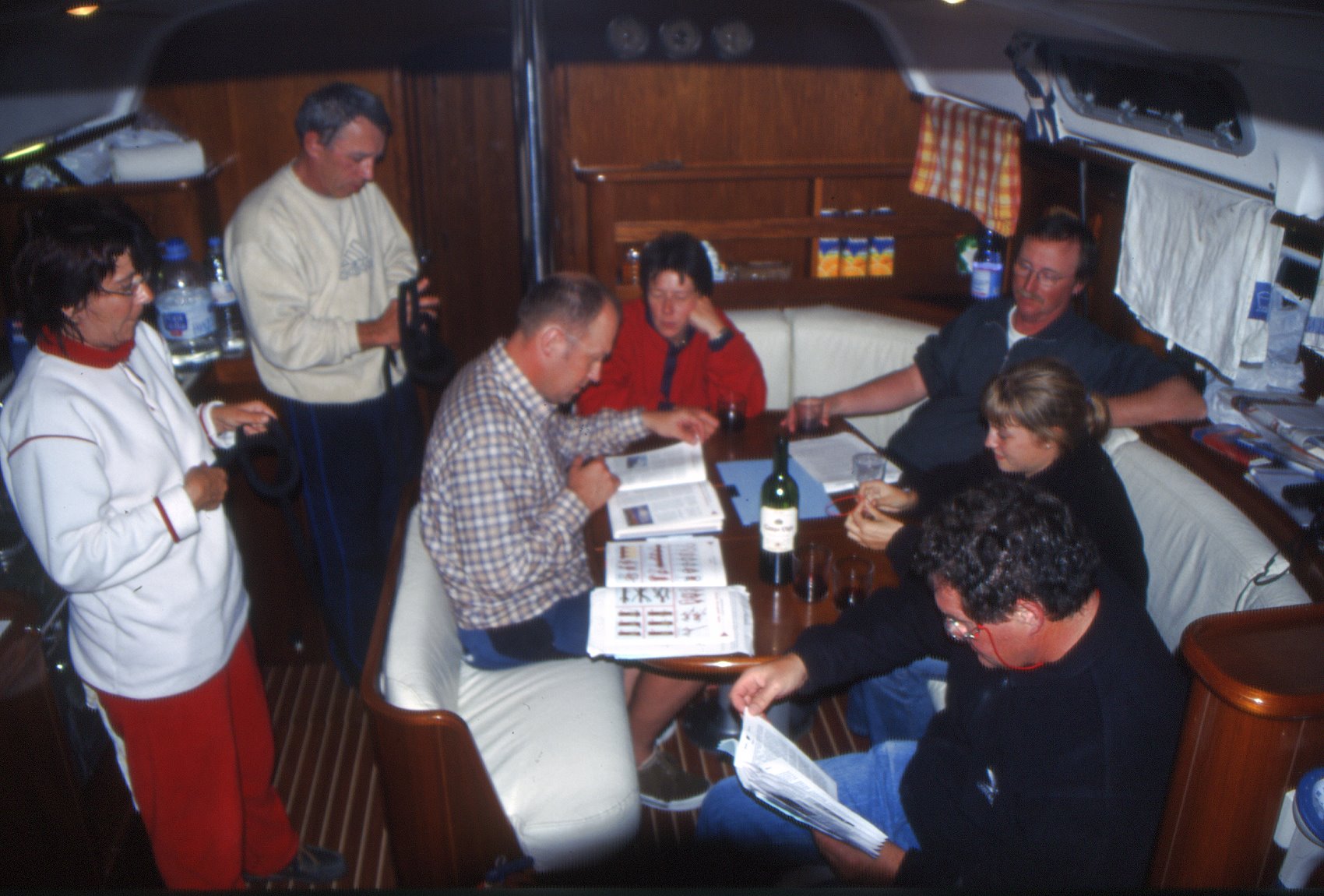Donnerstag Abend aber steigt die Spannung. Morgen ist Prüfung. Hellmuth und Markus üben noch mal Knoten und wälzen ihre nautische Literatur: