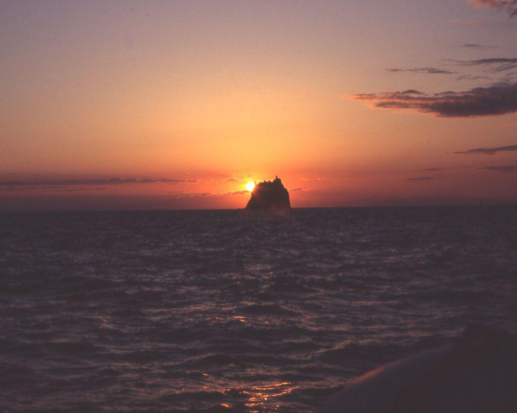 Unser nächstes Ziel war das kleine Panarea. Wir umsegelten Strombolicio und fuhren dann nach Panarea. Um die Mittagszeit legten wir am kleinen Hafen des kleinen Ortes an und erledigten einige einkäufe. Anschließend fuhren wir weiter in die schöne Bucht 'Caletta dei Zimmari' im Südwesten. Erstmals hatten wir Gesellschaft weiterer Yachten. Thilo packte sein Neopren aus und schnorchelte einige Zeit. Bei 14,5 Grad Wassertemperatur hielt sich der Rest der Crew vom Wasser fern. Noch reizvoller ist übrigens die winzige "Cala Junca" nur eine Meile weiter südwestlich. Wir fanden sie jedoch voller Quallen vor.