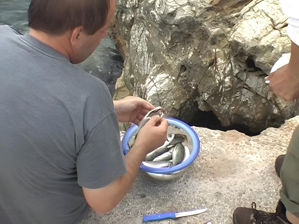 Den Vormittag nutzten wir zum Baden und setzen noch einmal mit dem Dinghy an Land über. Gegen 13 Uhr liefen wir zur nächsten Etappe aus. Am späten nachmittag machten wir in der kleinen Marina von 'Marina die Campo' fest. Wenig neben unserem Liegeplatz lag ein Fischer, und die Frage nach dem Abendessen - Kochen oder Restaurant - war schnell geklärt. Der fangfrische Fisch musste aber erst noch ausgenommen werden: