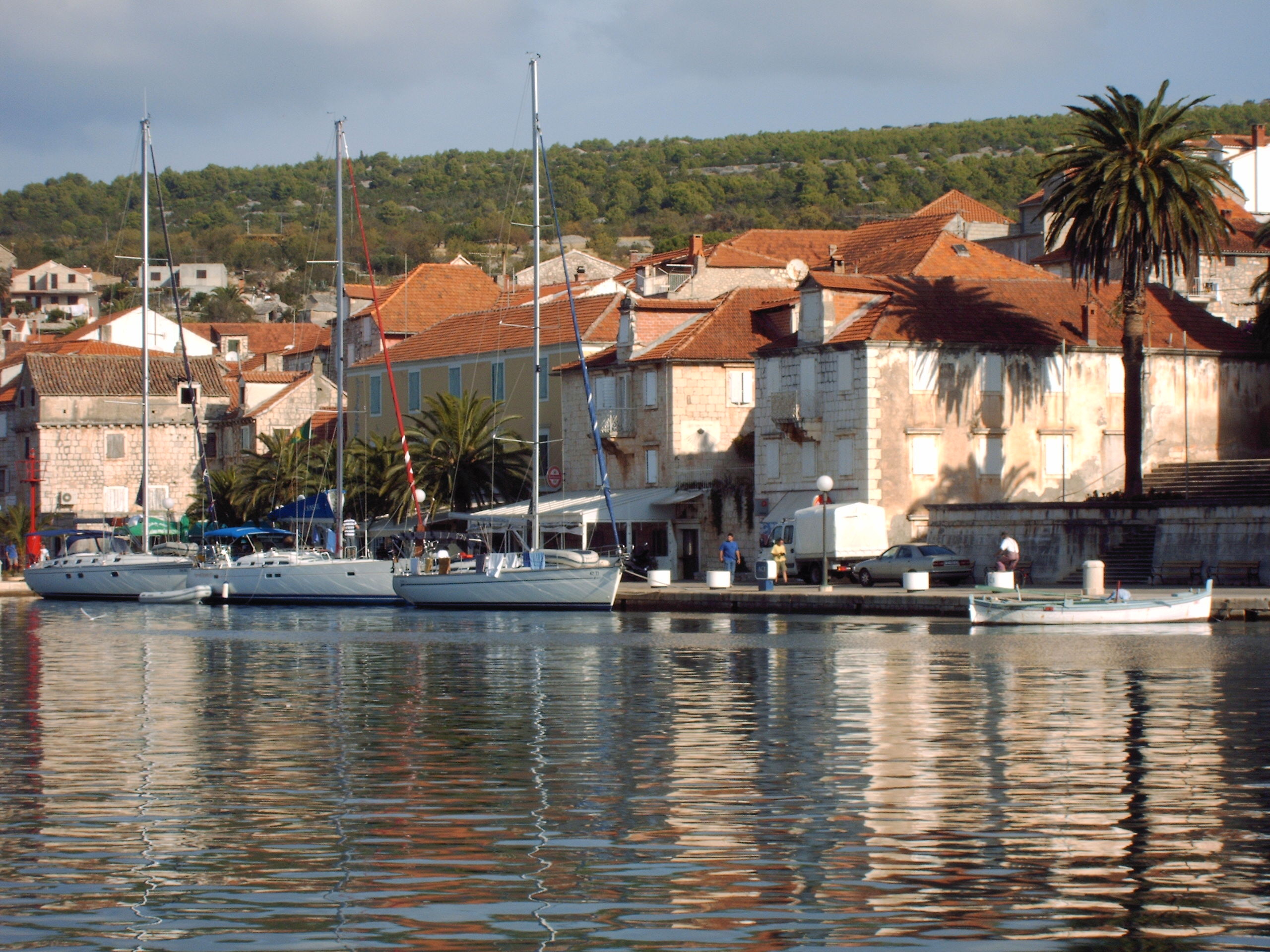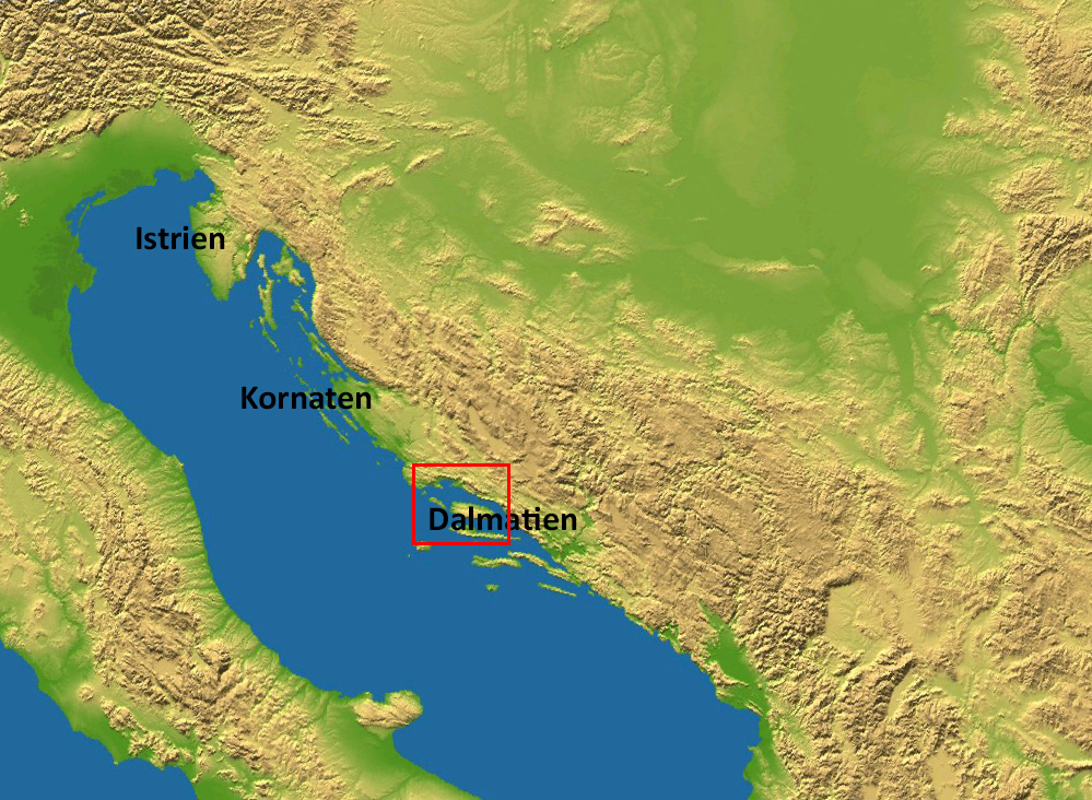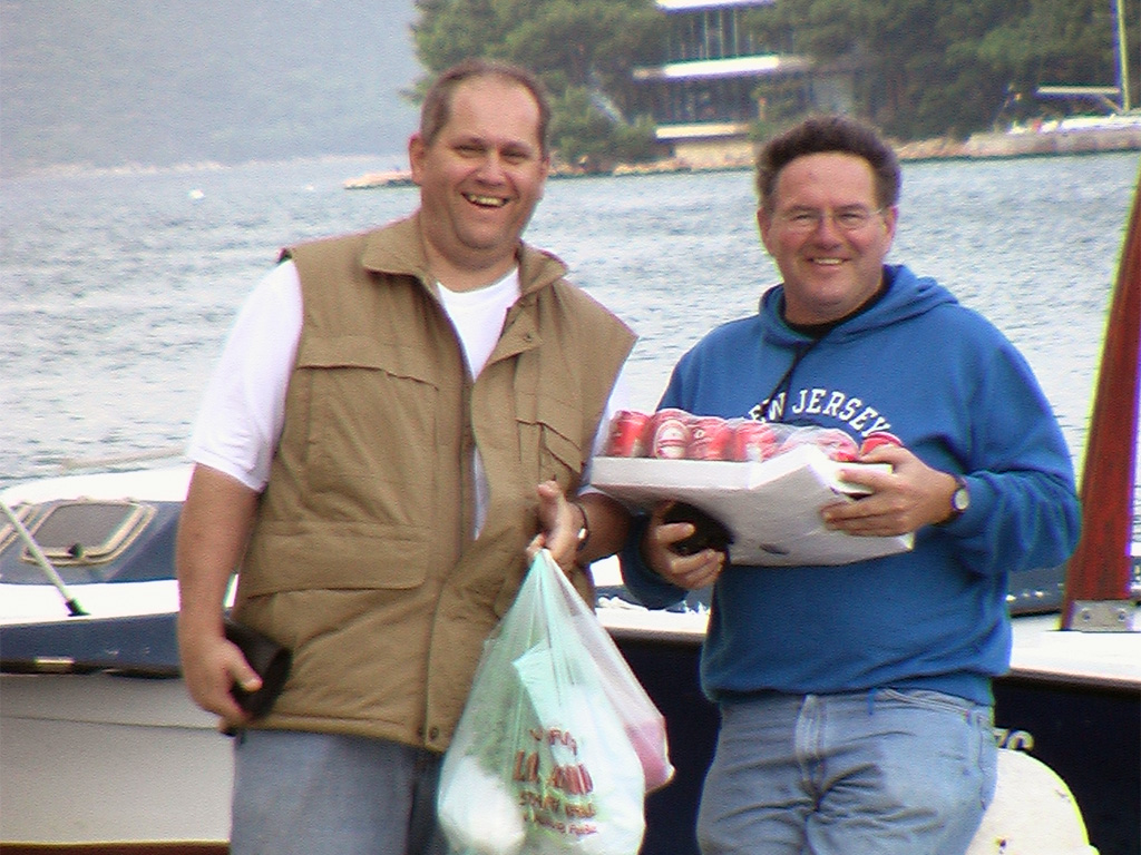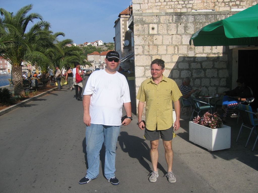 Gegen Mitternacht fuhren Doro, Herbert und Jürgen mit dem PKW in Pforzheim los und wir erreichten unseren Ausgangshafen 'Kastel Gomilica' nahe Split am frühen Nachmittag. Dort trafen wir mit Barbara, Roland, Sam und Simona zusammen, die geflogen, bzw. schon vor einer Woche mit dem Auto nach Kroatien gefahren waren.