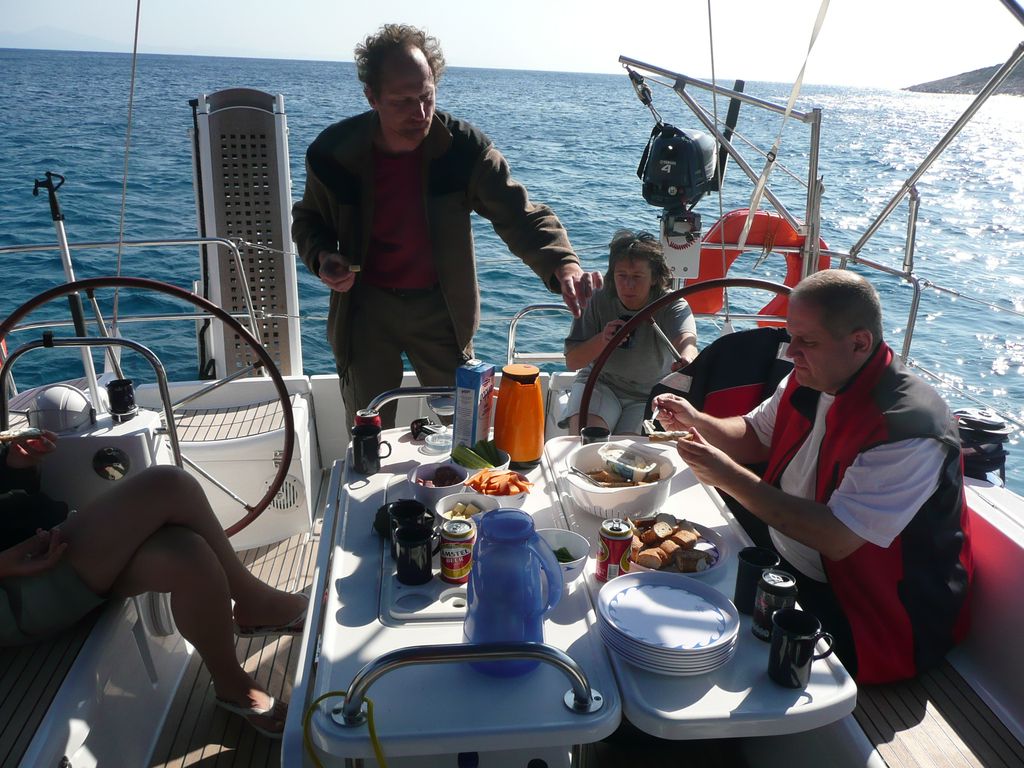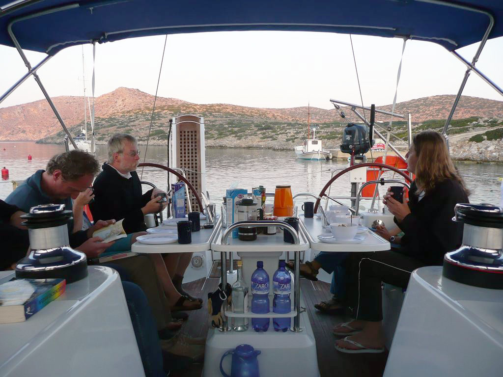 Erstmals hatten wir auch einen Crew-Wechsel. Zu Törnmitte in Mykonos verließen uns Roland und Wolfgang, deren Plätze Conny und Herbert für die zweite Woche einnahmen.
