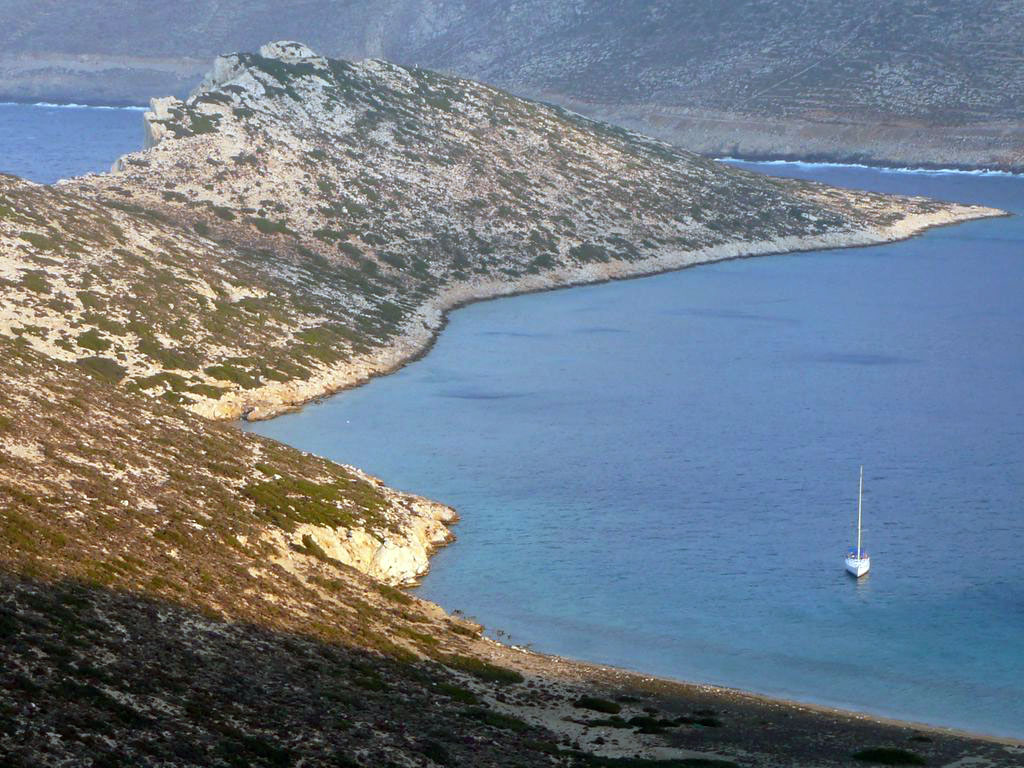 Heute hatten wir gleich eine ordentliche Etappe geplant: Bei optimalen Bedingungen könnten wir bis nach Milos durchsegeln. Nach ausgiebigem Frühstück lichteten wir um 8:45 den Anker. Ideale Winde 4 bis 5 Beaufort aus West ließen uns gut vorankommen. Gegen Mittag wurde der Wind für 2 Stunden sogar noch kräftiger.