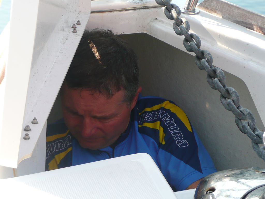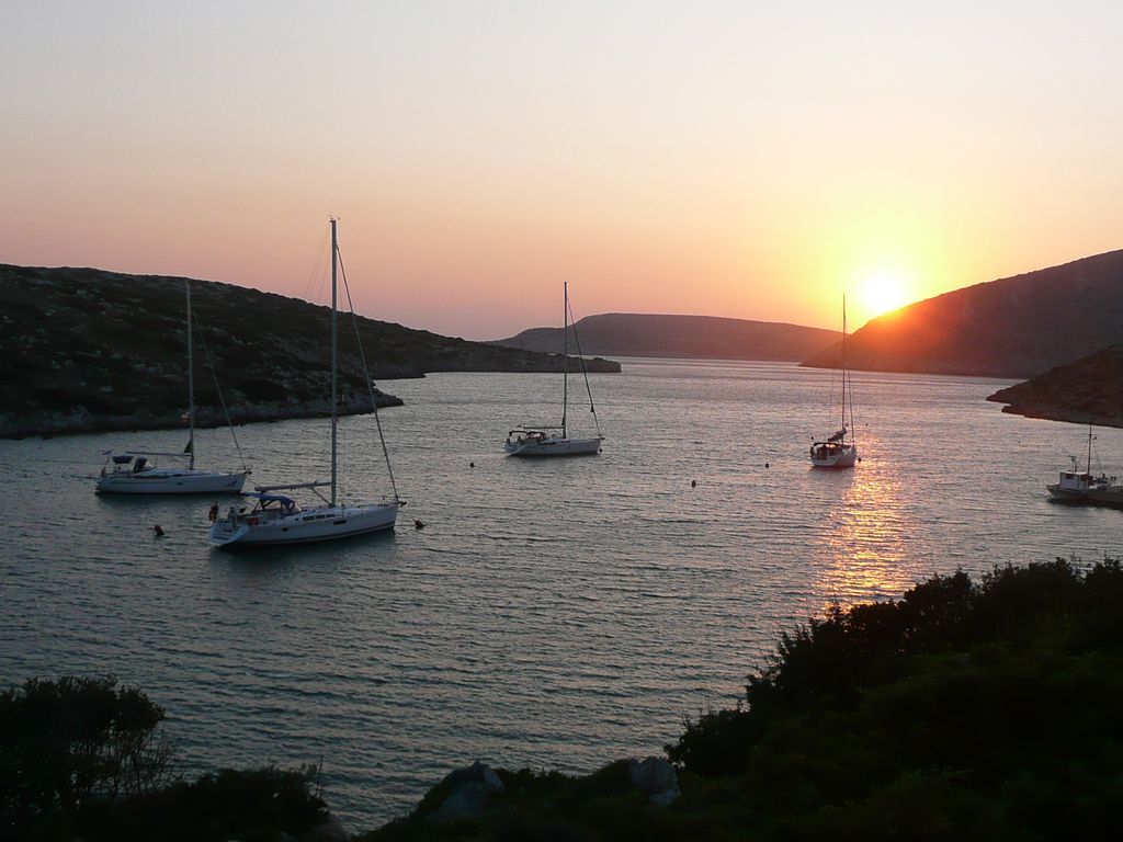 Um 14:00 konnten wir mit dem Eincheck beginnen. Übernahme und Einräumen gingen schnell voran und so konnten wir schon um 16:30 auslaufen. Doch wie schon beim letzten Ägäis-Törn reichte es wieder nicht bis zum Kap Sunion, wo wir den Sonnenuntergang am Poseidon-Tempel erleben wollten und wir mussten wieder in der davor liegenden Bucht Ormos Anavisou ankern. Leider stand Südschwell in die Bucht und die erste Nacht wurde so ein wenig unruhig.