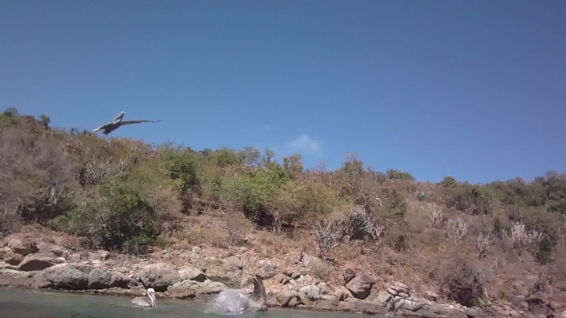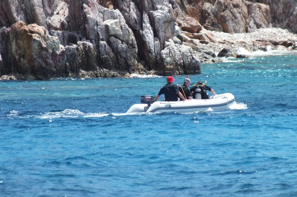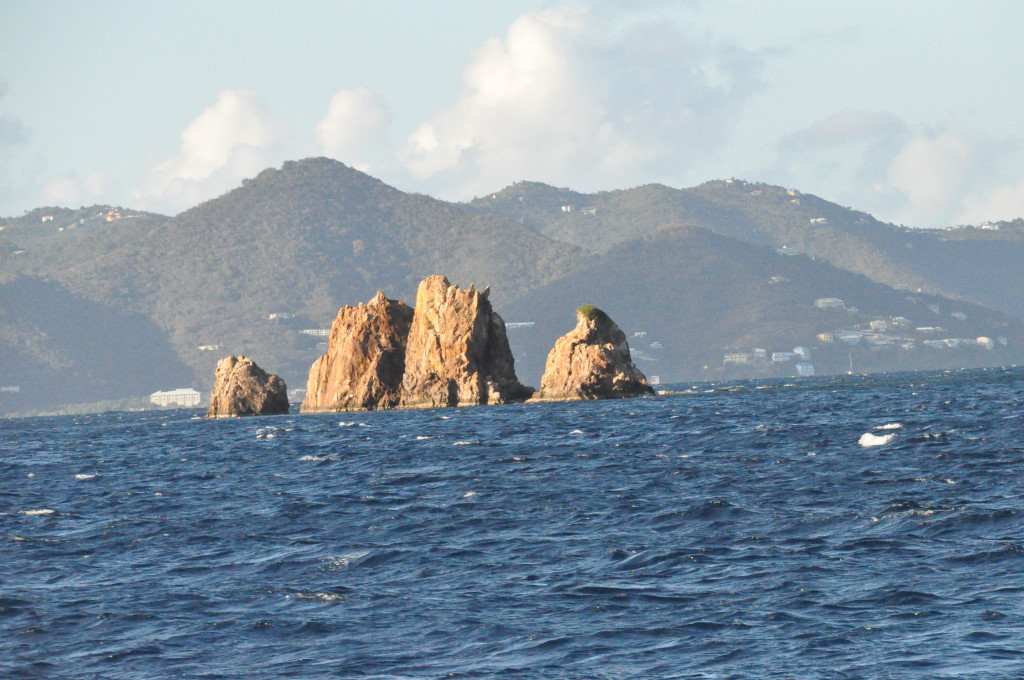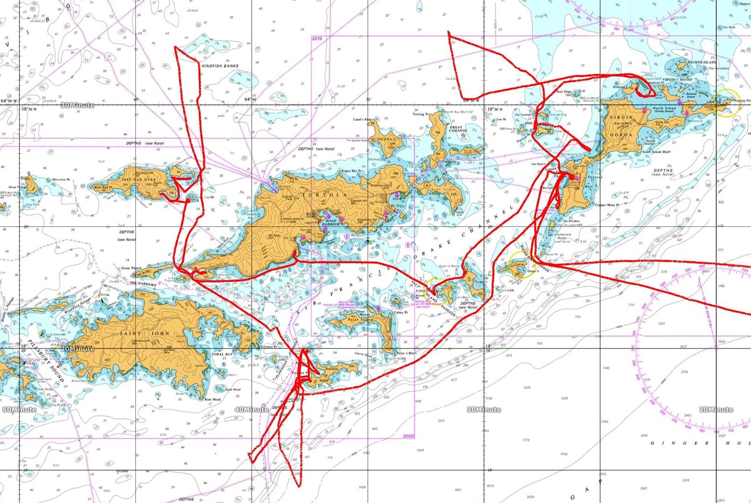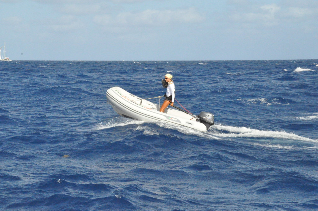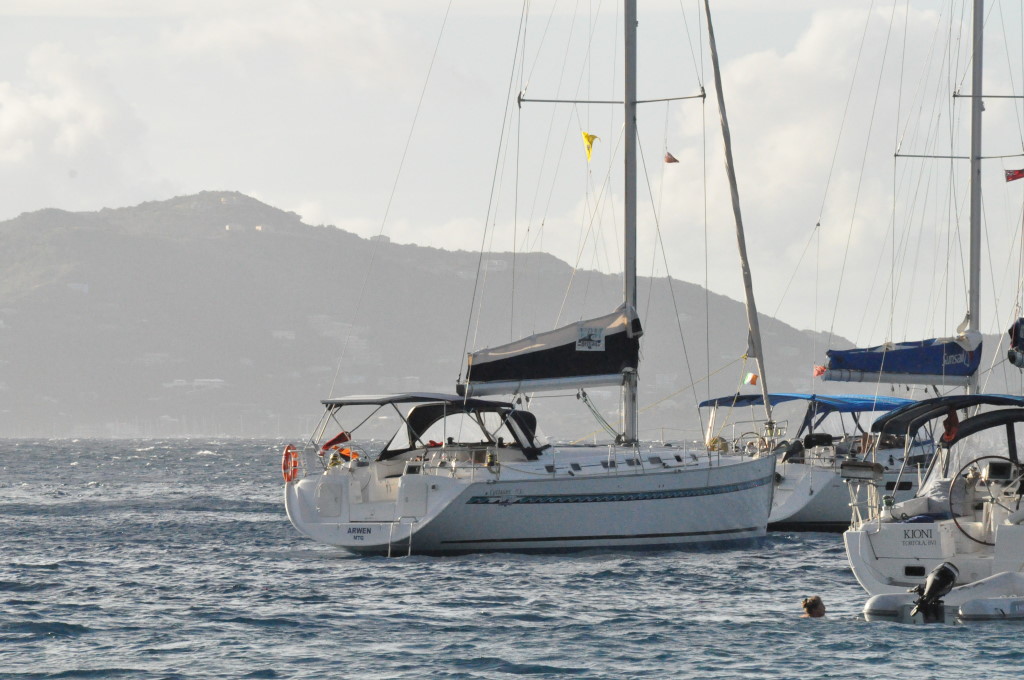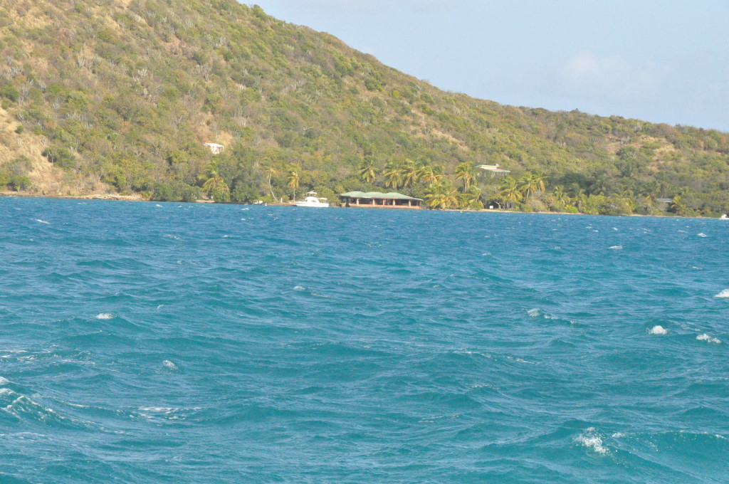 Gegen 10:00 Uhr verließen wir 'Drakes Anchorage' wieder. Nachdem wir den 'North Sound' verlassen hatten, näherte sich ein Schlauchboot. Eine sportliche Dame fuhr im Stehen mit Kamera auf der Schulter und umkreiste uns mehrfach. Sie kam uns teils recht nah, und machte dabei sicher spektakuläre Aufnahmen von uns. Auf ihrem Boot war eine Internet-Adresse angegeben, wo man die Bilder dann wohl ansehen und bestellen konnte. Allerdings fanden wir bei der Recherche, die erst wieder zu Hause möglich war, keine Previews der Aufnahmen mehr. Schade.