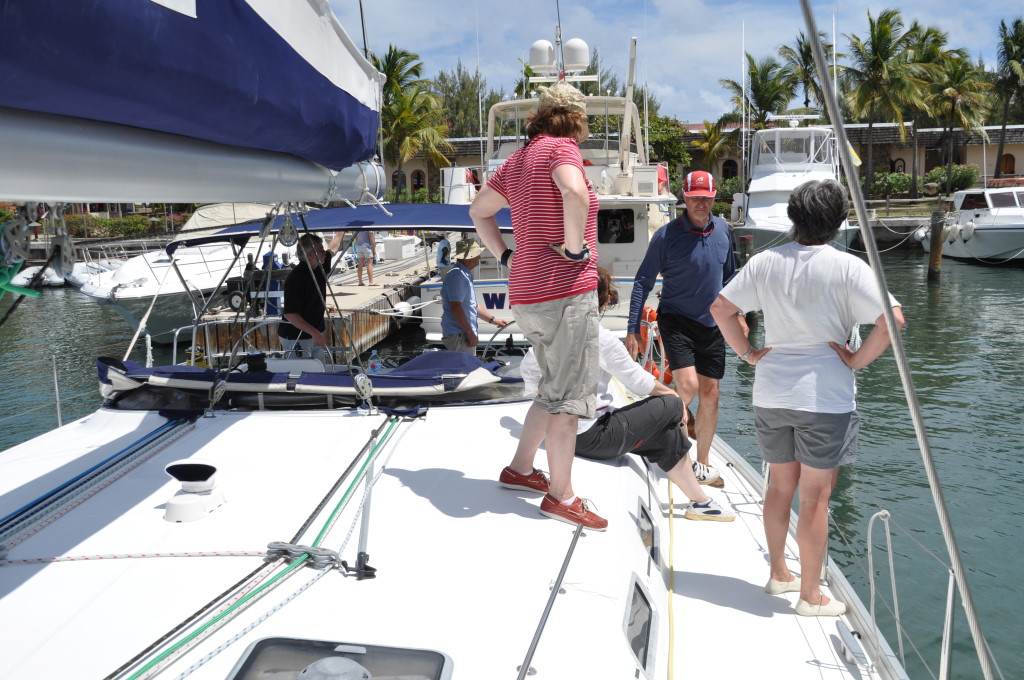 Die Gezeiten sind in der Karibik zwar gering, ein Blick auf die Tidentafel im Garmin zeigte aber, dass aktuell Ebbe und niedrigster Wasserstand war. Gegen 7 Uhr morgens war mit 25cm höherem Wasser zu rechnen. Das, so hofften wir, würde dann reichen, um wieder freizukommen. So markierten wir zur guten Sichtbarkeit für etwaige nachts hier fahrende Boote unsere horizontal zu den Bojen gespannten Festmacher und die Ankerkette mit unseren Fendern und gingen dann in die (deutlich schrägliegenden!) Kojen.