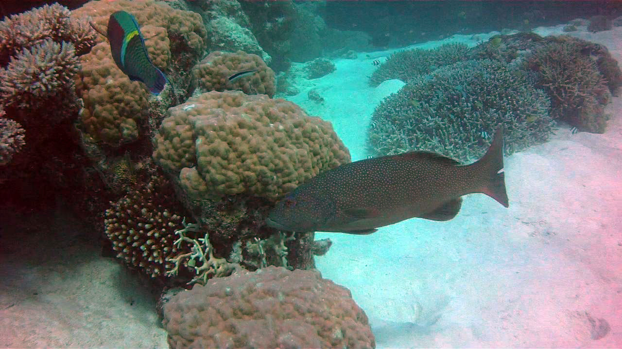 Unser Tagesziel war die südöstlich gelegene Insel 'Amedee'. Da auch hier die Überfahrt nicht weit war, hatten wir vormittags keine Eile und legten erst gegen 11:30 ab. Plötzlich kam aber die Idee auf, statt 'Amedee' direkt innerhalb der Laguna anzusteuern, die Lagune durch den westlich gelegenen 'Pass de Dumbea' zu verlassen, auf dem offenen Pazifik am Aussenriff entlang nach Südosten zu fahren und durch den Pass bei 'Amedee' wieder in die Lagune zurückzukehren. So hofften wir auf dem offenen Ozean bessere Chancen zu haben, dass Jochen ein leckeres Abendessen angelt. Für diese spontane Idee waren wir aber zu spät gestartet. Dennoch nahmen wir Kurs Richtung Westen und durchfuhren den 'Pass de Dumbea'. Es ist immer wieder beeindruckend die Naturgewalten wahrzunehmen, wenn man ein Korallenriff durchfährt und die scheinar grundlos auf dem offenen Meer sich brechenden Wellen am Riff sieht. Etwa zwei Stunden fuhren wir ausserhalb der Laguna auf dem offenen Pazifik und Jochen angelte, was das Zeug hielt. Doch auch hier wollte sich kein Erfolg einstellen. So fuhren wir gegen 15 Uhr wieder durch den Pass zurück in die Lagune - ohne frisches Abendessen.