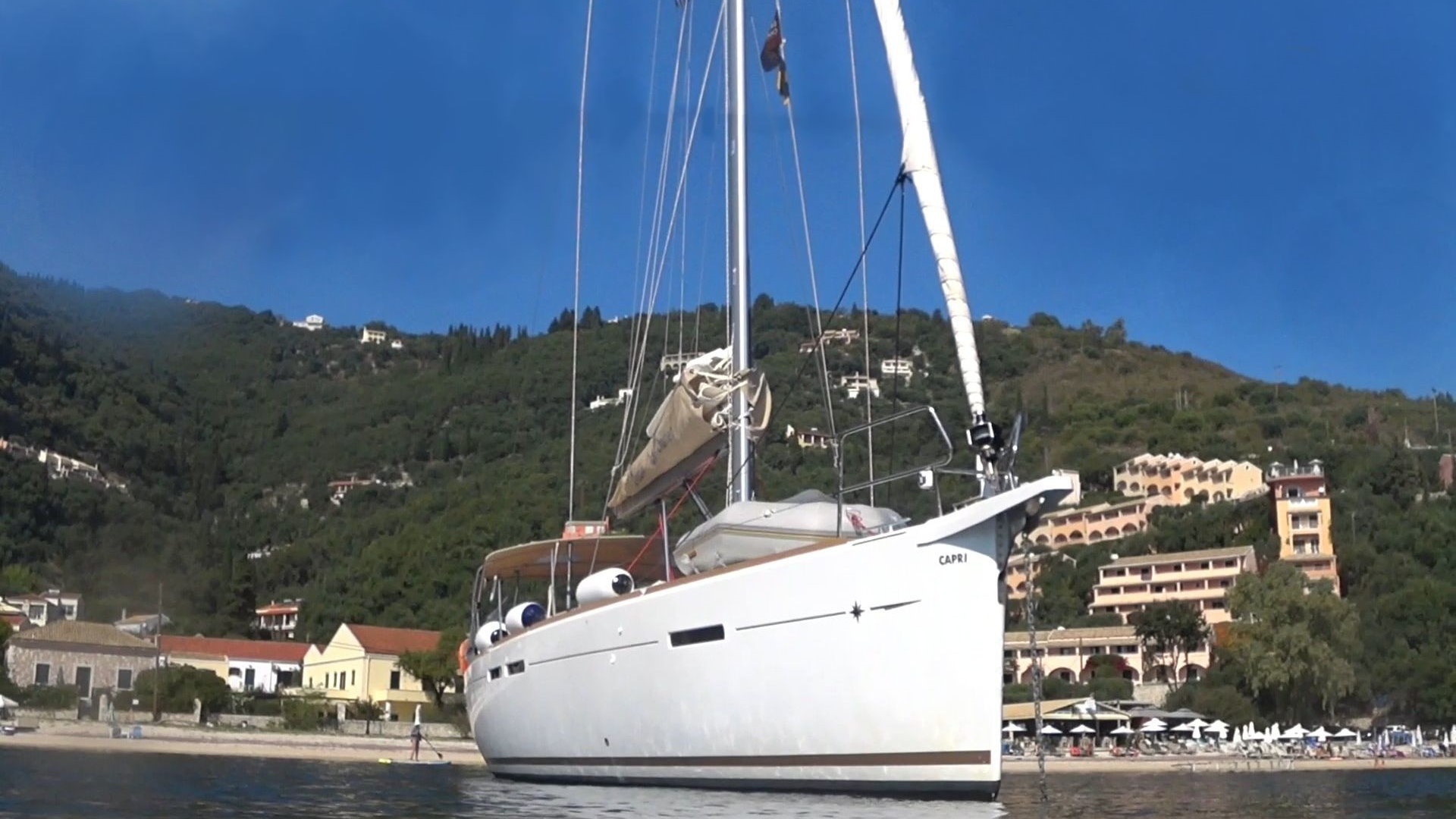 Bei schönstem Wetter genossen wir ein ausgiebiges Frühstück und gegen 10 Uhr liefen wir aus Richtung Insel 'Paxi' und dort die ganz im Norden liegende Bucht mit dem Ort 'Lakka'. Der Wind bewegte sich irgendwo zwischen 1 und 2 Bft, so fuhren wir den Schlag komplett unter Motor. Die Bucht um 'Lakka' ist weitläufig und gut geschützt und so befanden sich dort schon über 10 Yachten vor Anker. Wir fanden dennoch einen schönen Ankerplatz und nach kurzem Anlegegetränk unterschiedlichster Art stand Baden und Schnorcheln auf dem Programm. Gegen Abend setzten wir mit den Dinghy zum Ort über und fanden die gemütliche Taverne 'Stasinos' für unser Abendessen.